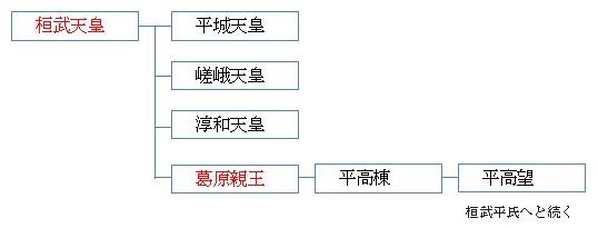 さらに、葛原親王(かずらわらしんのう)の孫『高望王』(たかもちおう)の流れを組む平氏を特に『桓武平氏』と呼んだ。
